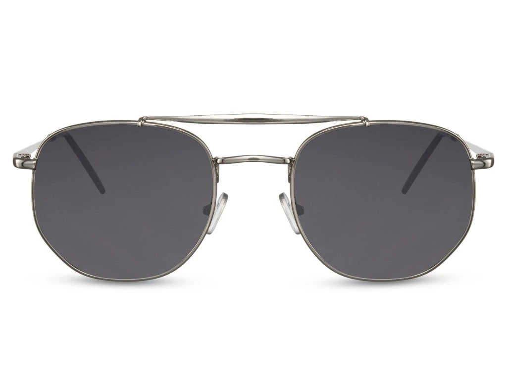 Barva_obroučky: Stříbrná, Barva_skla: Černá, Pohlaví: Pánské a Dámské, ŠÍřká skel: 5,4 cm, Výška brýlí: 5 cm, Šířká brýlí: 14,3 cm, UV: 100% ochrana proti UV záření, kategorie 3, Typ brýlí: Pilotky